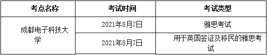 接英国文化教育协会通知,成都电子科技大学雅思考点2021年8月7日场次的雅思考试、用于英国签证及移民的雅思考试因故取消。