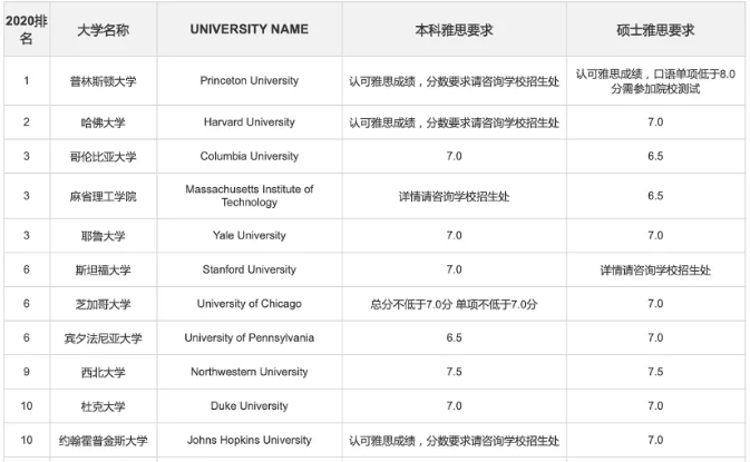 随着雅思影响力的不断扩大,包括常春藤盟校在内的3400所院校,认可雅思成绩。U.S.NEWS美国综合大学本科排名Top100中的多数,雅思要求都达到了总分7分。